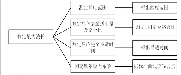 εmax—摩爾吸光系數(shù)(表示1mol/L的溶液,在液層厚度為1cm時(shí)的吸光度,其單位為L(zhǎng)/(mol·cm),C—溶液中鐵的濃度,單位為mol/L ,L—溶液的厚度,單位cm。