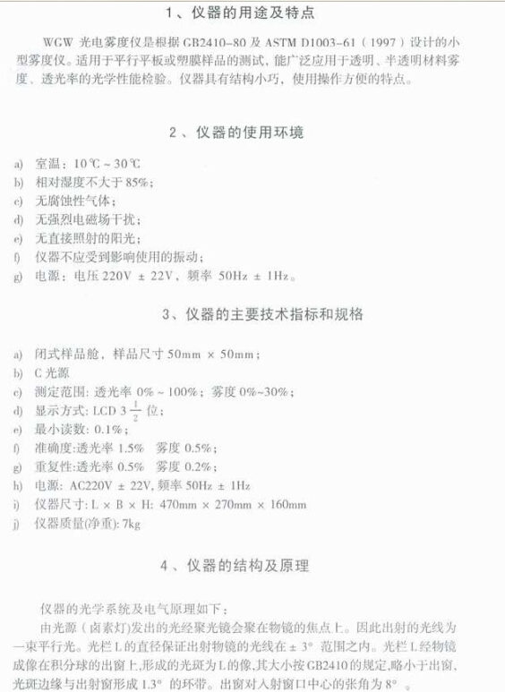 WGW光電霧度儀(液晶數(shù)顯)使用說明書