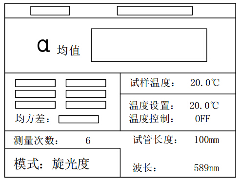 a) 測旋光度時,模式選 1,測量內(nèi)容顯示旋光度,數(shù)據(jù)欄顯示α及α均值,需要在設(shè)置