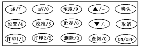 儀器有五種工作狀態(tài)。即pN測量、mV測量、濃度測量、設置、校準。儀器各工作狀態(tài)可通過相應的鍵進行切換。