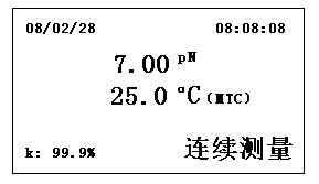 按下“ON/OFF”鍵,儀器自動進入pN測量狀態(tài)。儀器顯示如下界面: