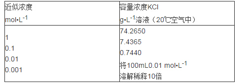 (1)KCl應(yīng)采用優(yōu)級純(GR),且需在220~240℃下烘干2小時(shí),然后放入干燥器中冷卻至室溫。