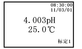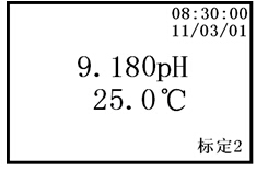 c. 當(dāng)顯示屏上的pH值讀數(shù)趨于穩(wěn)定后,按下“確認(rèn)”鍵,說(shuō)明儀器已完成二點(diǎn)標(biāo)定。儀器顯示如下: