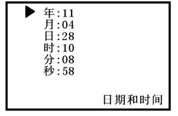 用戶(hù)通過(guò)“”或“”鍵移動(dòng)光標(biāo)“▶” 選擇需所需要修改“年、月、日、時(shí)、分、秒”項(xiàng),并按“確認(rèn)”鍵,儀器顯示如下: