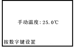 當(dāng)光標(biāo)“▶”指手動(dòng)溫度設(shè)置參數(shù)項(xiàng)時(shí),按“確定”鍵,儀器顯示如上。通過(guò)“數(shù)字”鍵設(shè)置手動(dòng)溫度值。然后,按“確定”鍵予以確認(rèn),設(shè)置完畢,按“取消”鍵退出手動(dòng)溫度設(shè)置狀態(tài),儀器進(jìn)入設(shè)置參數(shù)狀態(tài)。手動(dòng)溫度設(shè)置范圍(0.0~135.0)℃。