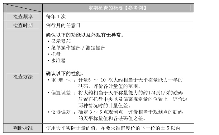 如果檢查內(nèi)容比較寬松,則在未能發(fā)現(xiàn)異常的狀況下使用天平的風險就比較高,如果過度嚴格,則有可能導致業(yè)務效率降低,因此,請根據(jù)風險、工作上所要求的性能等,充分討論檢查內(nèi)容,制定出合理的檢查內(nèi)容。