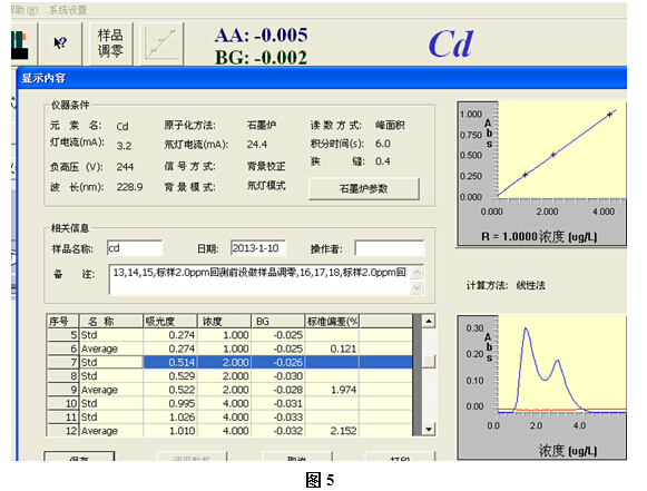例: 本實(shí)驗(yàn)樣品稱量為2.5103克,消解后定容至100ml容量瓶中,搖勻測定.此溶液中鎘含量為1.612ug/L.再根據(jù)上述的計算公式,可得出樣品中鎘含量為0.064mg/kg.