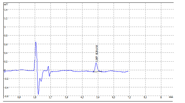 保留時(shí)間 | 名稱 | 峰面積 | 峰高 | 半高峰寬 | 理論塔板數(shù) |