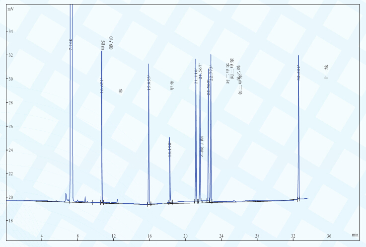 樣品:1μl TVOC 標(biāo)樣直接進(jìn)樣(0.1mg/ml)