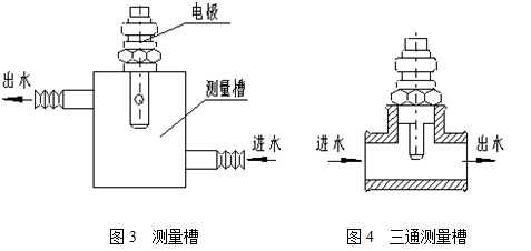b) 用戶可采用圖三所示的測(cè)量槽,槽下方接進(jìn)水管(聚乙烯管),管道中應(yīng)無氣泡。也可將電極裝入不銹