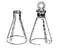 滴瓶 | 盛放少量液體試劑的容器。由膠頭滴管和滴瓶組成,滴管置于滴瓶內(nèi), | 滴瓶口為磨口,不能盛放堿液。有無色和棕色兩種,見光分解需避光保存的(如硝酸銀溶液)應(yīng)盛放在棕色瓶內(nèi)。酸和其它能腐蝕橡膠制品的液體(如液溴)不宜長期盛放在瓶內(nèi)。滴管用畢應(yīng)及時放回原瓶,切記!不可“串瓶”。 |