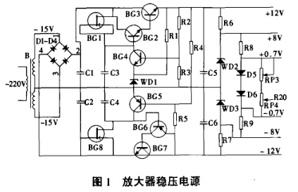 接通電源,首先進(jìn)行儀器調(diào) 0,發(fā)現(xiàn)儀器不能調(diào) 0,這說明放大器穩(wěn)壓電源有問題。參看圖 1,放大器穩(wěn)壓電源主要由整流二極管 D1~I(xiàn) 9 4 、晶體管 BG1~BG8、穩(wěn)壓二極管 W D 1~ W D3 等有關(guān)元器件組成。該電源有 6種輸出電壓,其 中 + 12 V 電壓不但為運(yùn)算放大器供電,而且控制鎢燈的電源電路。接通電源后 ,測量放大器穩(wěn)壓電源的各組輸出電壓,發(fā)現(xiàn) + 12V 電壓只有3. 6V .由于 + 12v 電壓控制所有的供 電電壓,說明+ 12V 電壓形成電路有故障。 測量濾波電容器C 1的兩端電壓為 + l2.7 V 基本正常,說明整流濾波電路無問題,故障在串聯(lián)穩(wěn)壓電路中。斷電后,分別檢查BG 1、BG2、BG3、W D 1、C3、R 1、R2 、1 t3、C5 等有關(guān)元 器件 ,發(fā)現(xiàn)濾 波 電 容 器 C5 漏 電嚴(yán) 重 ,造成+ 12V 電壓大大降低。更換 C5 (100~F/ 25V ) 后,接通電源,測量 + 12V 電壓正常,開機(jī)操作試驗(yàn),光源燈亮,分光光度計(jì)工作正常,故障排除。