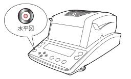 本水分儀依靠主機底面后部中央的固定點(1點)和前方左右兩個水平調(diào)節(jié)支腳(2點)維持水平。根據(jù)水平儀狀態(tài)判斷裝置是否水平。