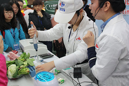 今年以來,南京市鼓樓區(qū)市場監(jiān)督管理局通過服務(wù)外包方式,委托第三方機構(gòu)在36家農(nóng)貿(mào)市場抽取450批次產(chǎn)品進行了快速檢測。水發(fā)產(chǎn)品甲醛檢測僅需3分鐘,10分鐘可完成蔬菜農(nóng)藥殘留檢測,15分鐘能測出肉類產(chǎn)品是否含有瘦肉精。