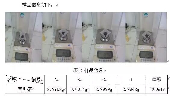 用電子天平取約3.0克樣品置于250mL錐形瓶中,加20ml沸水沖洗(由于水溫不好控制,故統(tǒng)一用沸水),即刻棄去第一道茶水;再加200ml沸水浸泡30min,傾出茶水,搖勻,將茶水用中速定量濾紙過濾,冷卻至室溫。同樣方法獲得第二道茶水及第三道茶水。