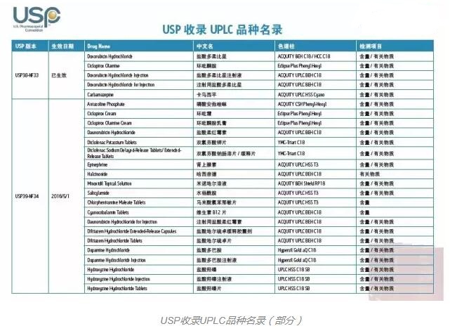 作為全球制藥行業(yè)法規(guī)標(biāo)桿,美國藥典(USP)在制藥行業(yè)擁有廣泛的影響力。而在今年更新的最新版本USP中,收錄了大量基于UPLC技術(shù)的各論(monograph),其中截止2016年年底將生效的品種高達57個。