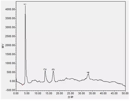 (2)相同濃度下4種組分的出峰響應值相差較大,配制混合標準溶液時可以依據(jù)樣品中的含量適當降低組分1或者增加其它組分的濃度;