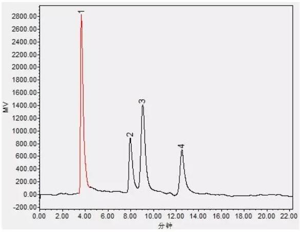 從圖中可以看出,雖然4種糖的混合標準溶液色譜圖中對應出現(xiàn)4個色譜峰,但是卻存在以下幾個問題: