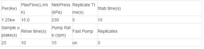 表1 ICP-OES的主要分析參數(shù)