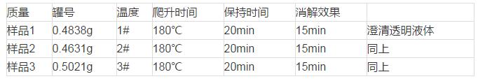 1、大米的微波消解條件摸索