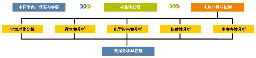 水質(zhì)檢測實驗室設(shè)計和規(guī)劃需要充分考慮從樣品收集、樣品保存、樣品轉(zhuǎn)移、樣品制備、儀器分析、數(shù)據(jù)管理等一系列分析檢驗流程,合理安排檢驗儀器設(shè)備局,從常規(guī)水質(zhì)理化指標(biāo),分別按照檢測要求檢測微生物、有機/無機化學(xué)污染物、放射性以及生物毒性等進行檢測。