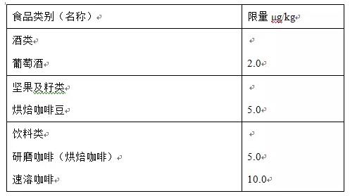 9、增加了葡萄酒和咖啡中赭曲霉毒素A限量