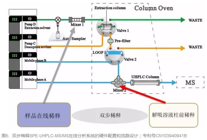 (5)大體積解吸溶液的在線稀釋,實(shí)現(xiàn)柱頭聚焦和有效UHPLC分離。