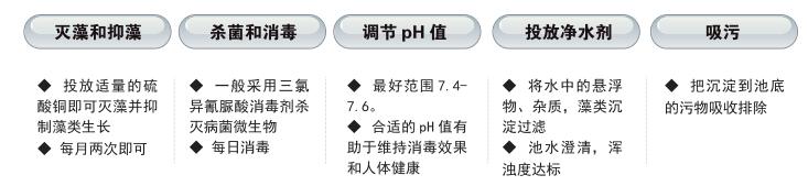 2、為了保證游泳池水質(zhì)安全,保護(hù)游泳者的身體健康,給泳池配備必要的池水消毒殺菌裝置和采取必要的池水處理藥劑投入是必不可少的。